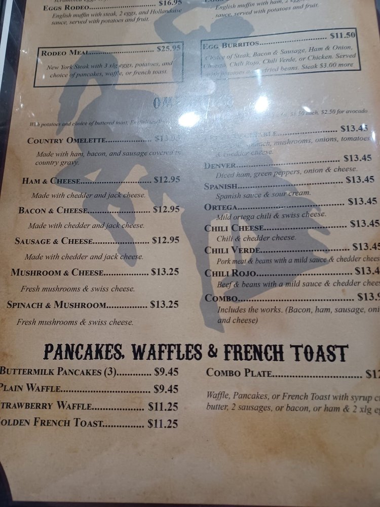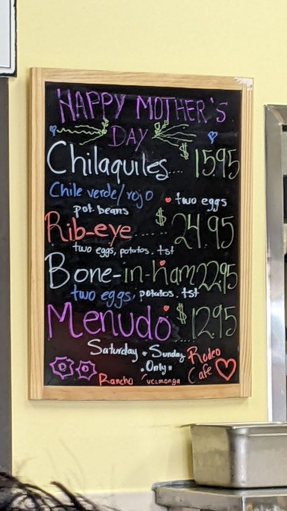 Rodeo Cafe in Rancho Cucamonga offers a charming American breakfast and brunch experience with a cozy atmosphere. This cafe is perfect for all occasions, from casual dining to group gatherings. The menu boasts delicious options like chilaquiles, huevos rancheros, deep fried pancakes, and juicy rib eye steaks. Customers rave about the fresh and homemade flavors, especially highlighting the standout home fries and jalapeƱos. The attentive service and friendly staff add to the welcoming ambiance of this hidden gem. With outdoor seating available and alcohol options, Rodeo Cafe is versatile for any diner. Make sure to arrive early as it tends to get busy quickly. Don't miss out on trying the Rodeo Breakfast or the John Wayne for a hearty and satisfying meal. Overall, Rodeo Cafe is a must-visit for a delightful breakfast or brunch experience in the area.